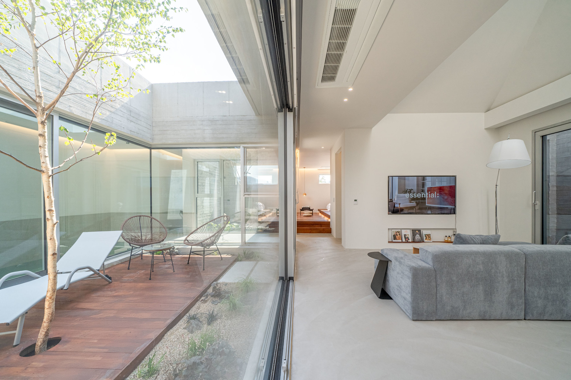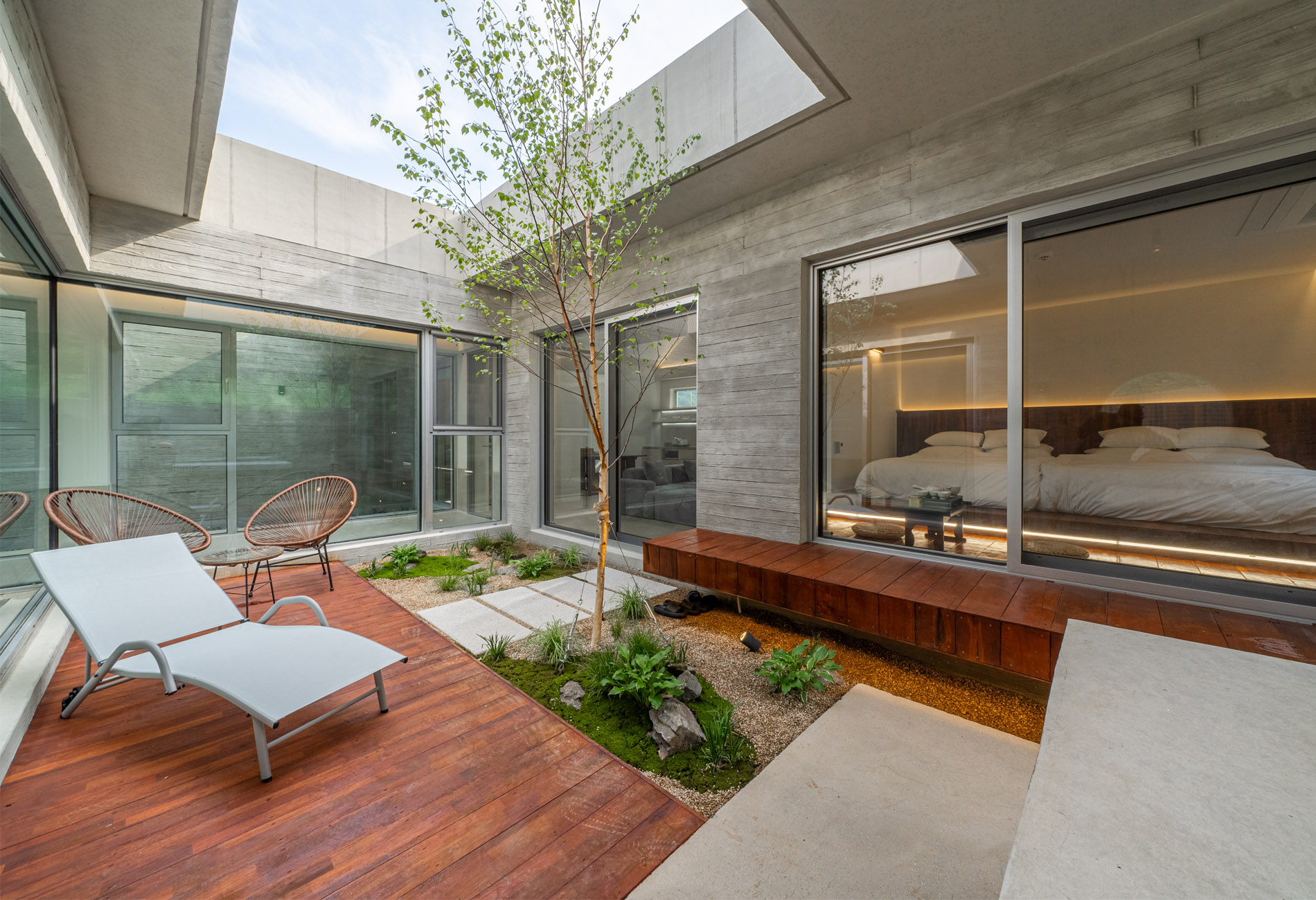 그리고 중정으로의 넓은 창을 통하여
