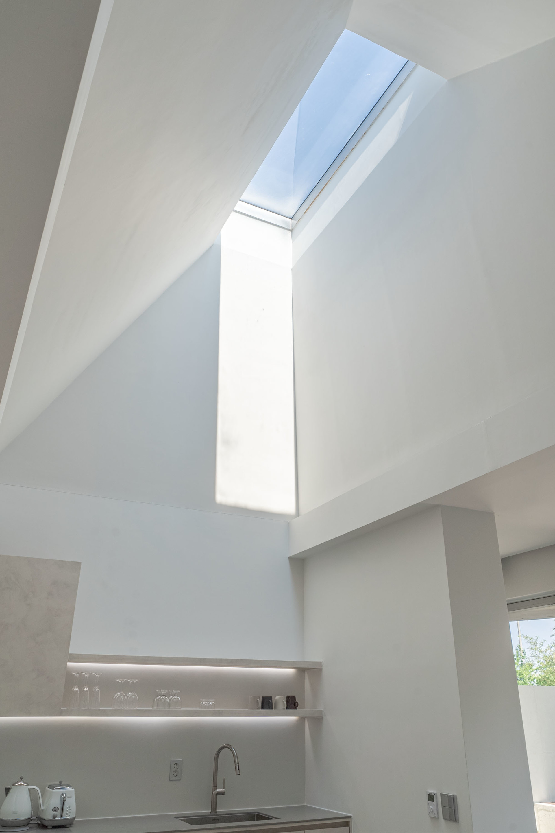보다 활동적인 주방과 거실은 층고를 높여 수직적 개방감을 확 보하였고 그 상부에 천창을 두어 제한적인 빛이 실내로 인입될 수 있도록 하였고