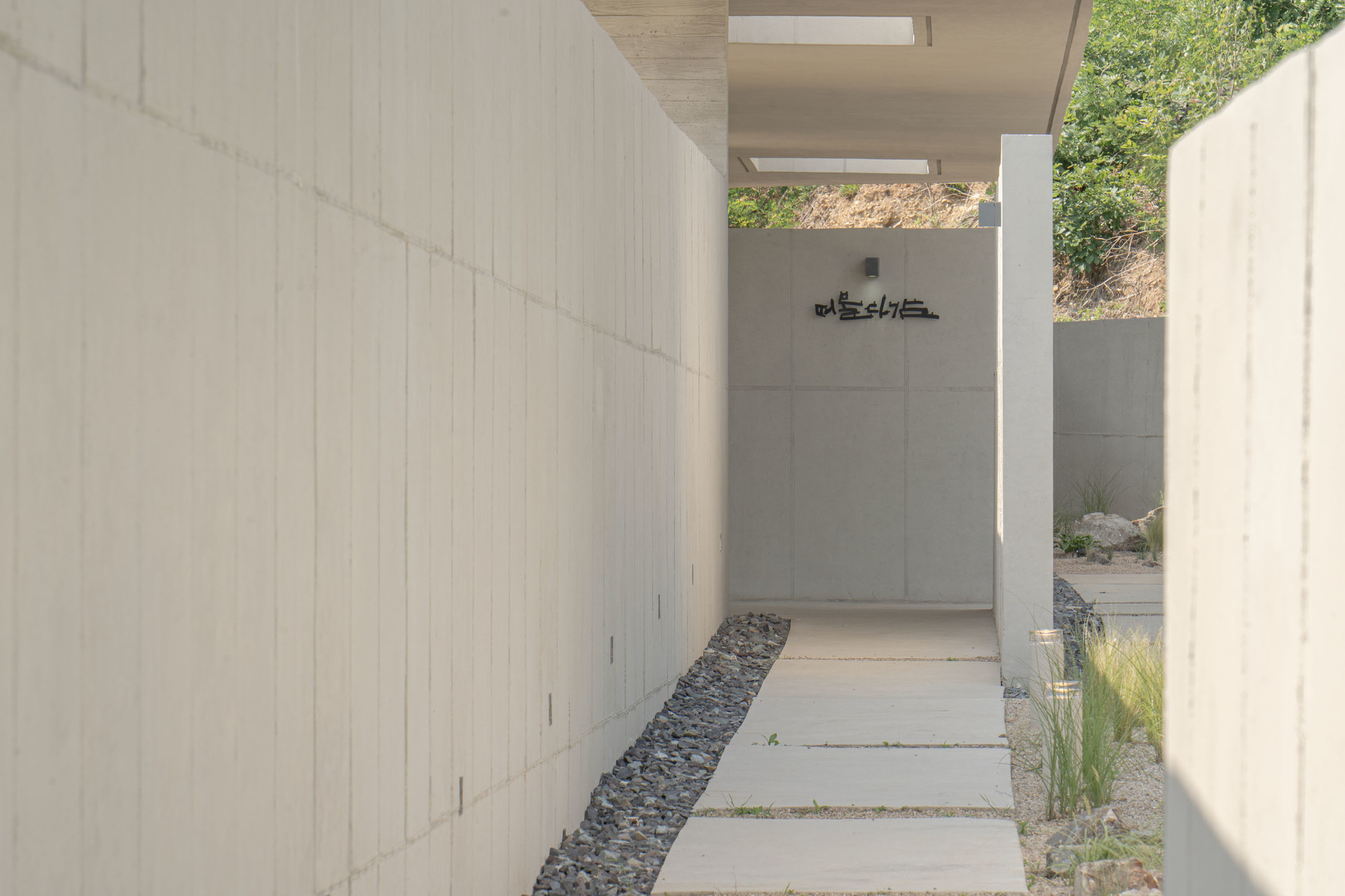 노출콘크리트로 담장을 만들어 주위의 환경 등에